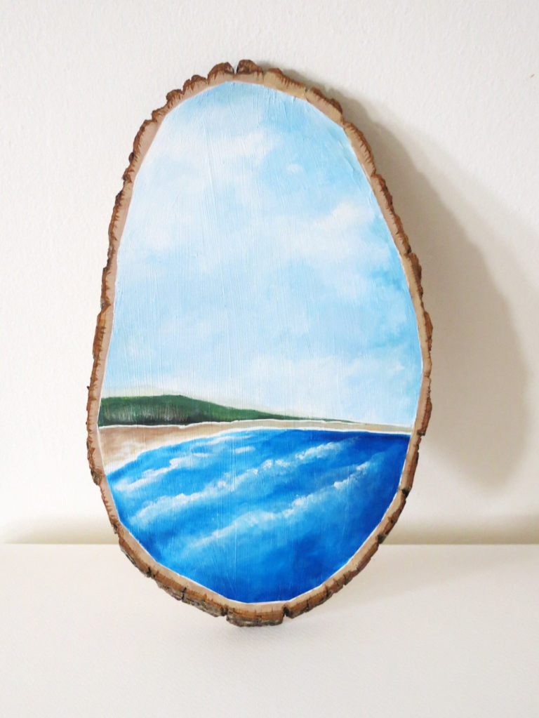 “That looks like an island inside an island”. This is an ode to the little island I was born in surrounded by the bee-you-tea-ful blues (looking at this makes me crave for a vacation somewhere with some island breeze and palm trees, sigh). The wood shape was a bonus that worked in favor. This little guy is up for grabs, if you’re interested, leave a message or contact me!